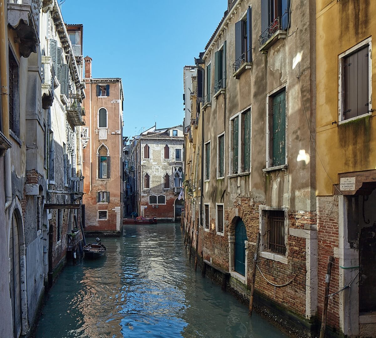 Die schöne Stille im Winter – die Winter-Melancholie gibt der Stadt ein ganz anderes Gesicht als der Rummel des Sommers mit den vielen Touristenströmen. Das mattierende Licht dieser Jahreszeit bei bedecktem Himmel entsättigt etwas die Farben der alten Paläste oder lässt sie in der weichen Wintersonne noch farbiger und intensiver erscheinen. Diese Stadt ist einzigartig, denn wo sonst gibt es Gondeln statt Autos, Vaporetti statt Stadtbussen oder Kanäle statt Straßen und natürlich die Biennale, den weltberühmten Karneval und das Acqua alta ( Hochwasser ). Kein Auto, kein Bus, kein Motorrad, kein Fahrrad, kein Hupen, kein Bremsen – nur das Rauschen der Wellen in den Kanälen, das Knattern der Schiffsmotoren, das Läuten der vielen Kirchenglocken, der Schrei der Möwen, die Musik aus den Fenstern, das Parlare / Reden der Einwohner und ab und an das Singen der Gondolieri. Allein schon die Namen der sechs Stadtteile ( Sestrieri ) des Centro Storico ( historischer Stadtteil ) klingen wie Opernnamen – Cannaregio, Castello, Dorsoduro, San Marco, San Polo und Santa Croce. Dazu kommen noch die Inseln Isola della Giudecca, Burano, Murano, Torcello, die kleineren Inseln der Isole Minori und der Lido. Und nicht zu vergessen, Venedig ist die Lieblingskulisse der Liebenden in einer einzigartigen Lagunenromantik.